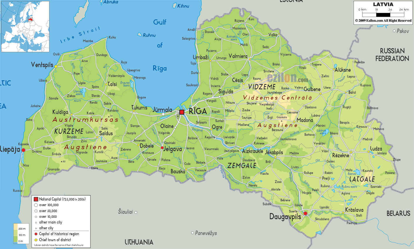 Карта Латвии с городами — полезное пособие для туриста, планирующего путешествие в эту прибалтийскую страну. На ней видно расположение столицы, Риги, а также главного курорта, Юрмалы. Становится понятно, как можно добраться до таких старинных городов как Сигулда и Цесис, известных своими замками или до Валмиеры, откуда обычно начинаются путешествия по просторам национального парка Гауя.