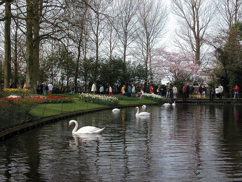 Здесь нет громадных полей тюльпанов — напротив, разбросанные то там, то сям клумбы и хорошо подстриженные газоны, а также плавающие по протокам ухоженные лебеди. И потому, не стоит думать, что, приехав сюда Вы окунетесь в море этих прекрасных весенних цветов, не увидев больше ничего — все очень гармонично и ничуть не однообразно!