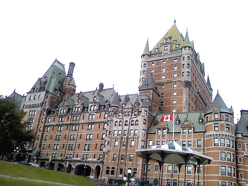 Величественный отель Шато Фронтенак (Château Frontenac) на обрывистом берегу реки Святого Лаврентия в Квебеке — самое известное из них. И, как поговаривают, вообще — самый фотографируемый отель мира! Того, кто видел эту махину хотя бы на снимках, внимание туристов не должно удивлять